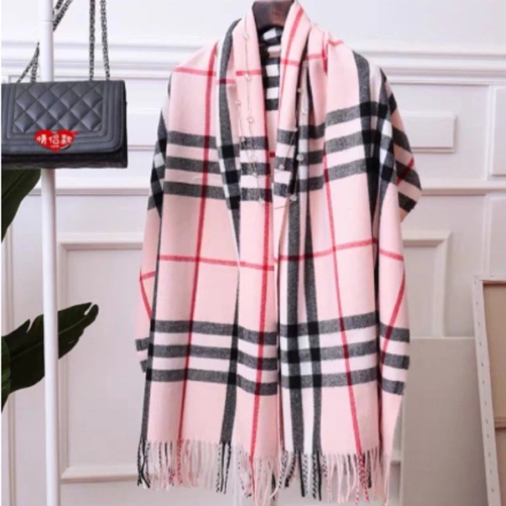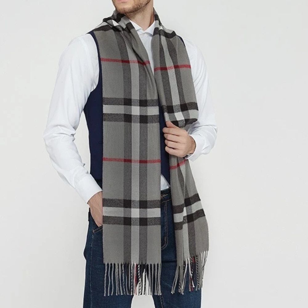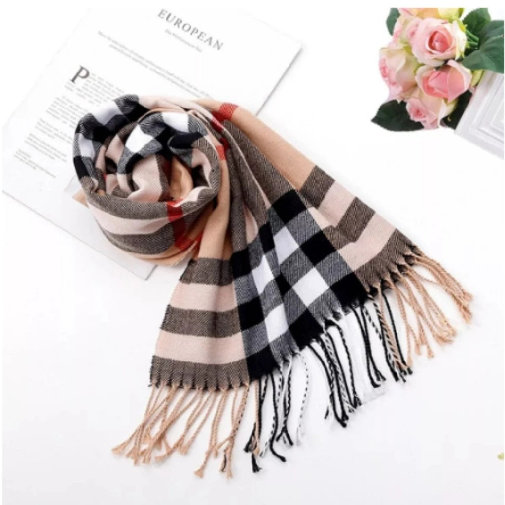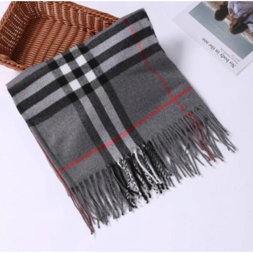 - 1x Cachecol Unissex Xadrez Clássico com Franjas para Inverno