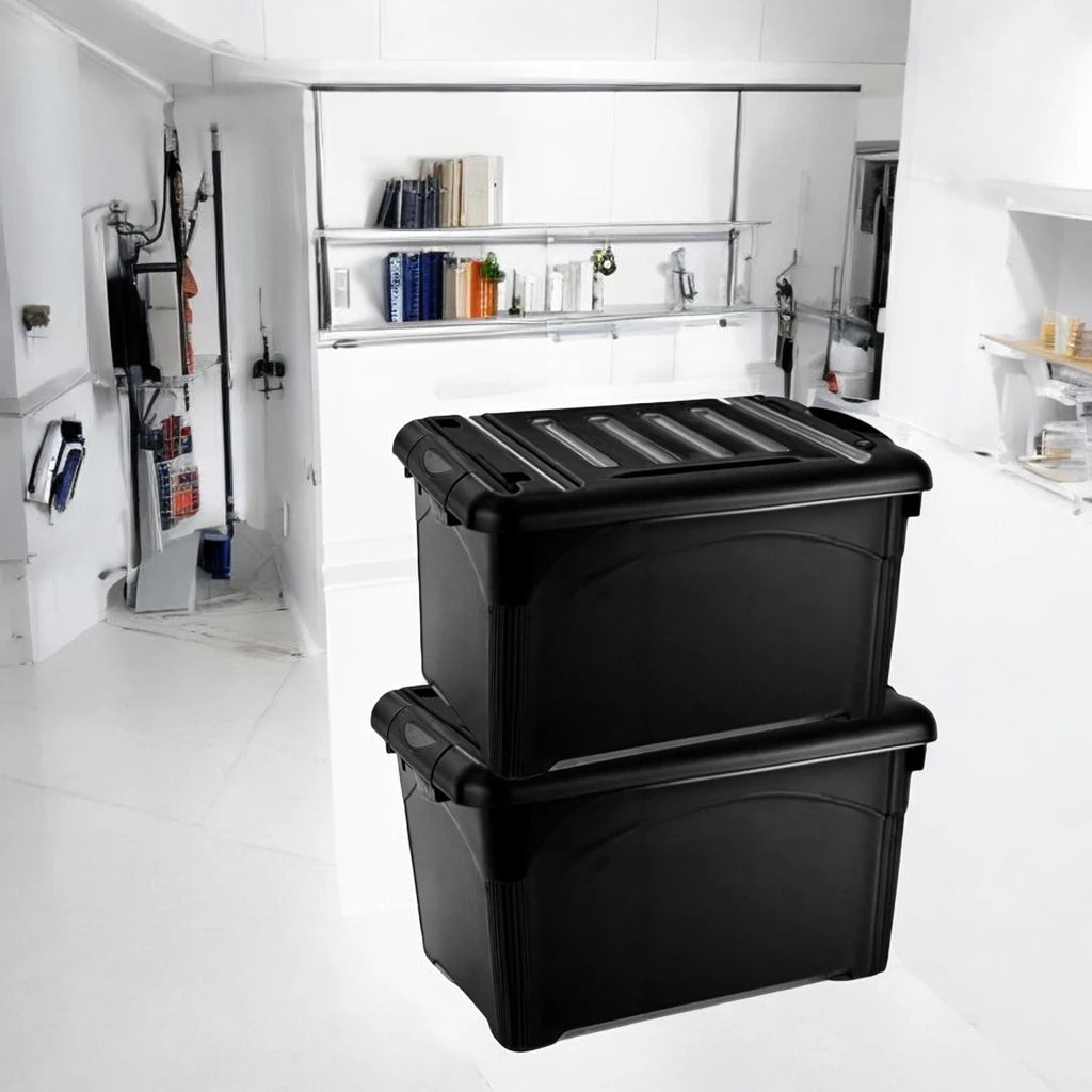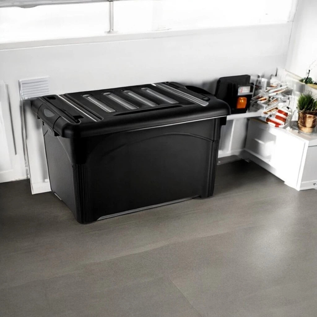 A Caixa Organizadora Multiuso 95 Litros com Rodinhas é perfeita para quem busca armazenar objetos grandes ou em grande quantidade sem perder a praticidade.