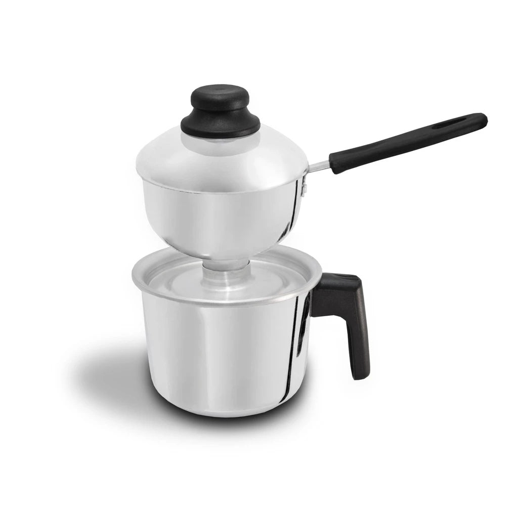 Fabricado em alumínio durável e fácil de limpar, o cuscuzeiro garante longa vida útil, eficiência no cozimento e praticidade na manutenção.