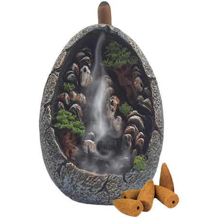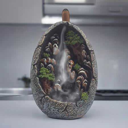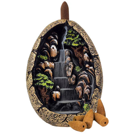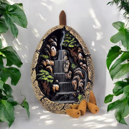 Esse incensário cachoeira muda isso rápido: acende o cone, a fumaça desce em forma de “cascata” e o ambiente fica mais leve, mais limpo e com uma vibe absurdamente mais tranquila.